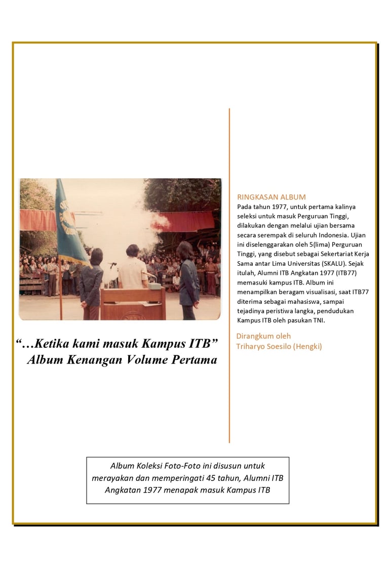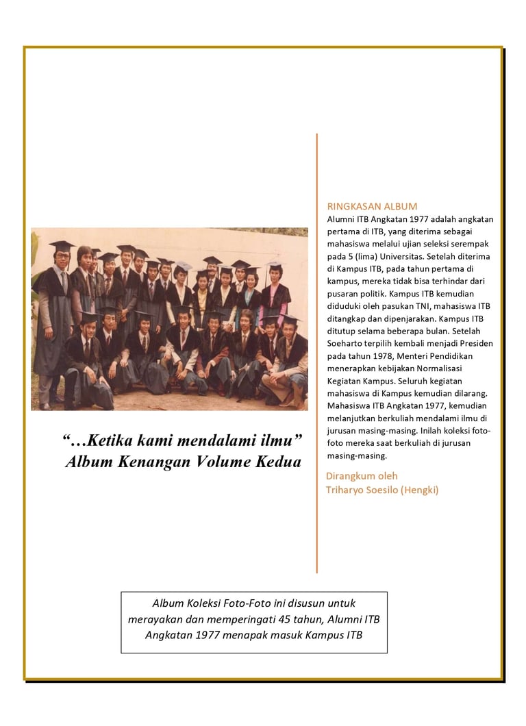 Dalam rangka memeriahkan Acara Reuni Akbar 50 tahun ITB77, Panitia Reuni 50 tahun ITB77, meluncurkan kembali Buku-Buku "Kenangan Indah", dalam upaya mempererat Tali Persahabatan antara para Alumni ITB Angkatan 1977